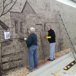 As the work progresses, many visitors to the Kimberling Center stop to comment on the painting and say they are looking forward to seeing it completed. As long as the temperature stays above 50 degrees, we can continue.