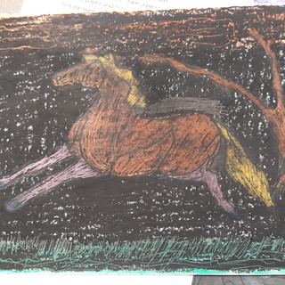 "Sgraffito" is the Italian word for "to scratch". In this workshop, using instructions gleaned from Ann Kullberg's COLOR magazine, Pat Hovis-French led these brave adventurers through multiple steps, using colored pencils and oil pastels, to create a fun "sgraffito" work of art. (Some of us had to redefine, "fun" though!) Helen Long, Pat Bell, Jack O'Keefe, Jan Rosenburg, and a somewhat reluctant Don French all followed the step-by-step instructions. Bamboo skewers were used to scratch through the oil pastel top layer. We came up with some "interesting" results. Here are a few candid shots from today:
